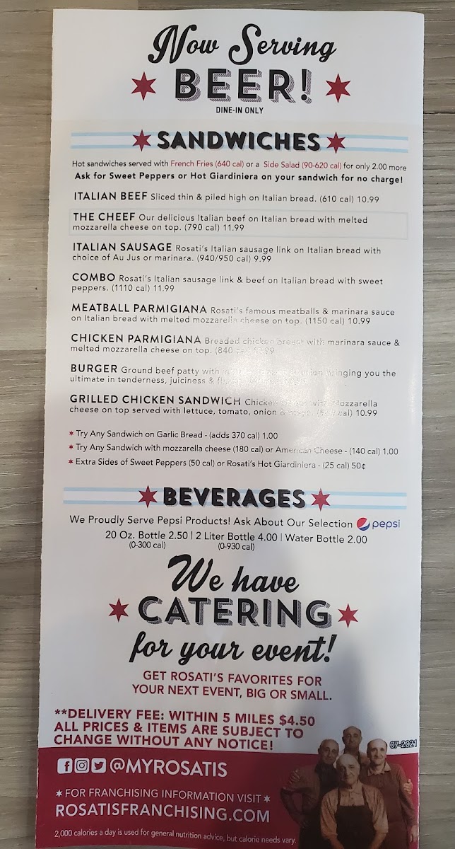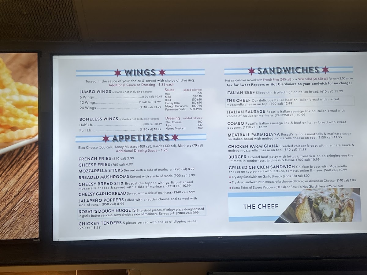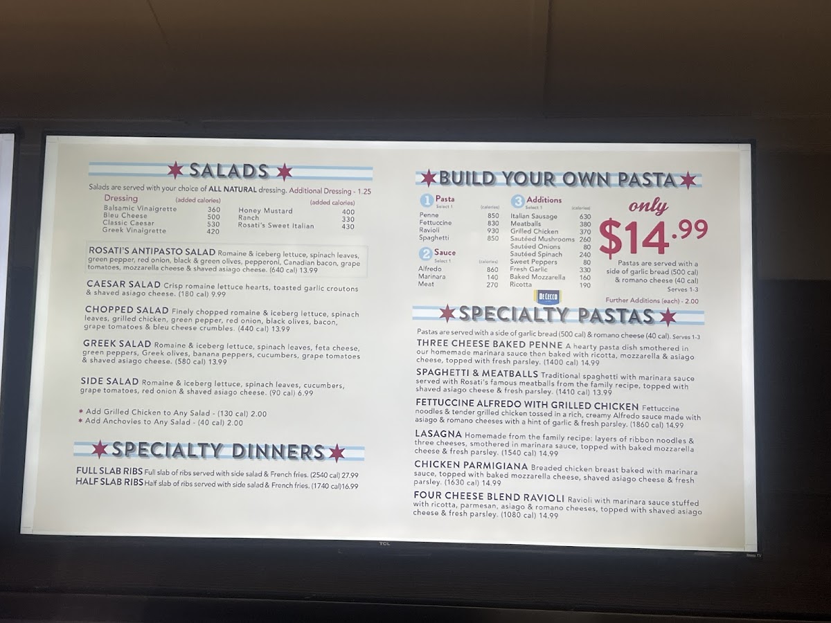 Rosati's Pizza Menu
